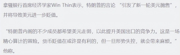 因为就在本日,好意思元汇率滑到了四年来的最低点。其时特朗普正在采访,记者问他是否担忧好意思元贬值。