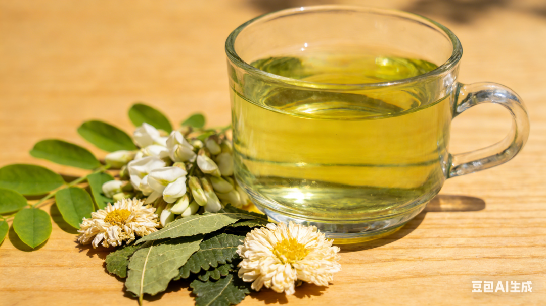 作念法:槐花和嫩桑叶清洗干净,和菊花沿路放入锅中,加400毫升水,大火煮开关火代茶饮。