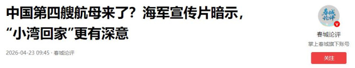 在东谈主民舟师诞生77周年之际,中国舟师22日负责发布全新形象宣传片《向大洋》。提神的网友们可能仍是发现了,在这部宣传片中,不但有先进潜艇水下辐射潜射反舰导弹膺惩水面舰艇等精彩画面,更用“谐音”给出了诸多示意:“新兵何剑”代表中国舟师的第四艘航母,“小湾回家”寓意台湾最终将归来故国。