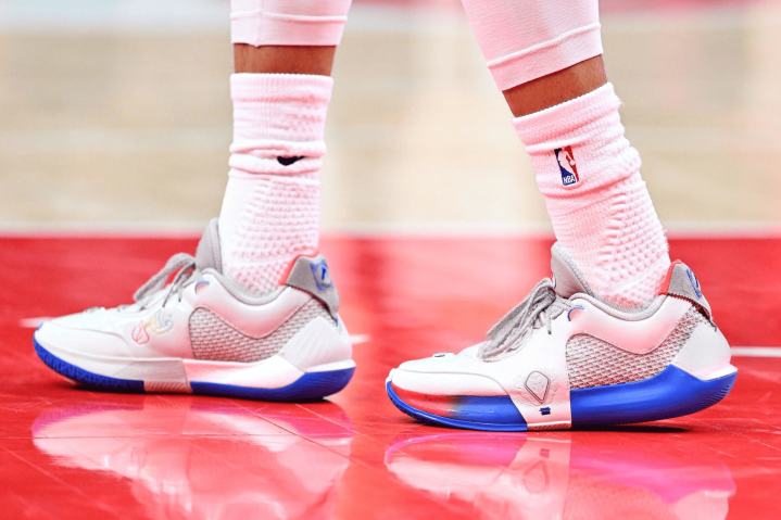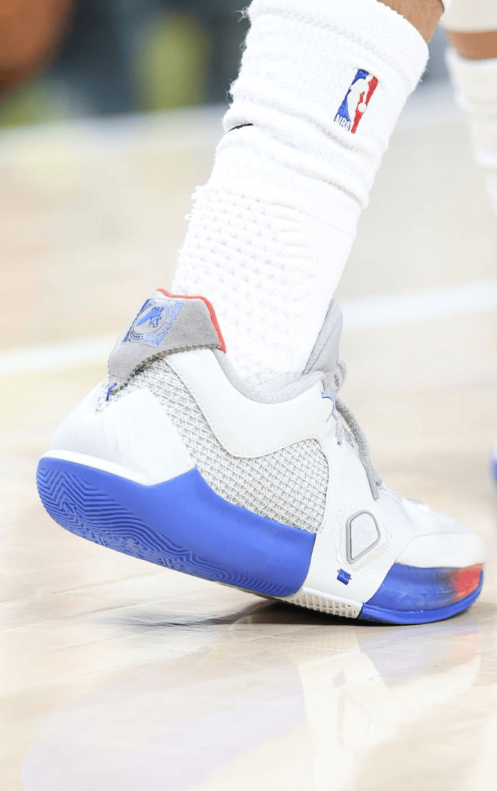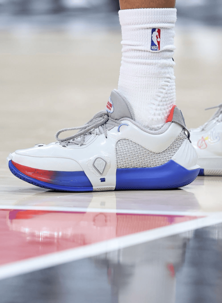 比赛中,麦科勒姆上脚李宁CJ4PE,配色灵感来自麦科勒姆女儿Jacobi最可爱的动画《托马斯和一又友们》。