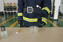 ▲消防员在一个加入多量香水的透明盒子中放入燃烧的纸条,香水遇明火后遽然被引燃。