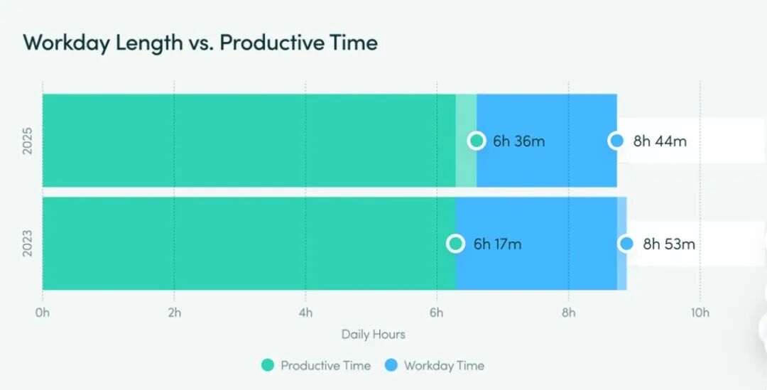 调研中的一组数据也很颤动:职责日是镌汰了,然则职责时候提前了、合作时候增多了、详实力被稀释了。